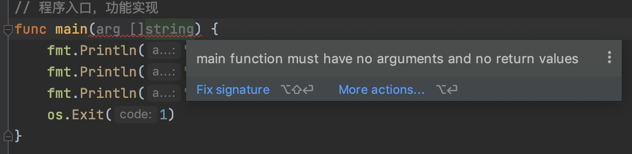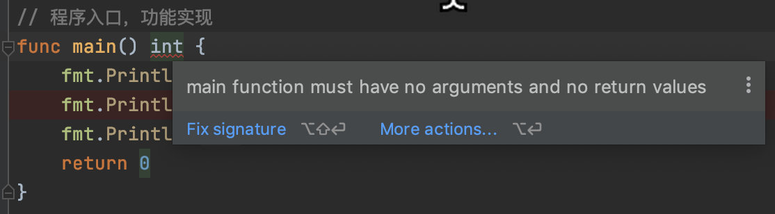 // IDE会自动导入包,所以可以直接使用fmt,而不需要写下面代码