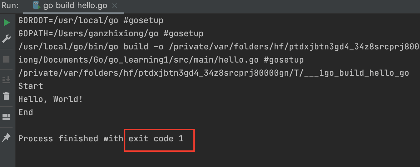 Unused function 'main',并且go build hello.go Configuration不可用。如下图所示:
